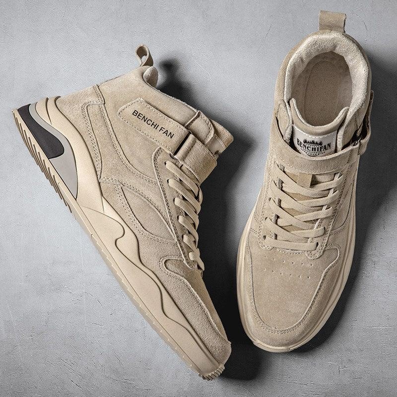 Herre Skinn Pustende Myk Såle Ren Farge Trendy Krokløkke Uformelt Sportsbanesko
