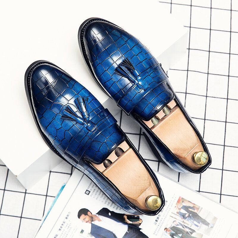 Herre Skinn Pustende Myk Såle Retro Crocodile Grain Slip On Casual Sko