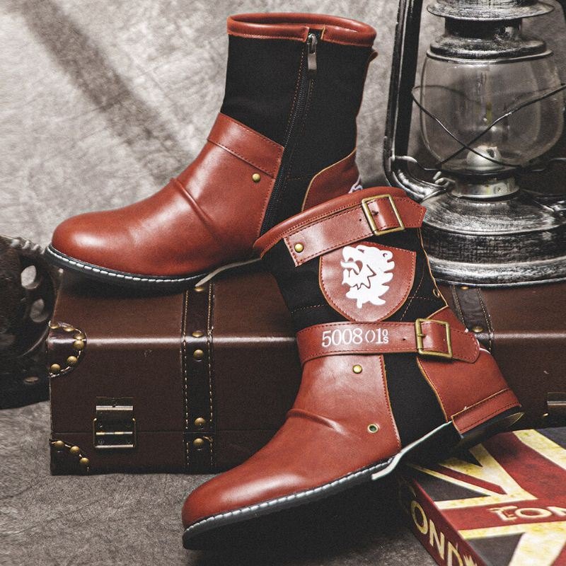Herre Skinn Pustende Myk Såle Rund Tå Sklisikker Glidelås Uformelle Martin-støvler