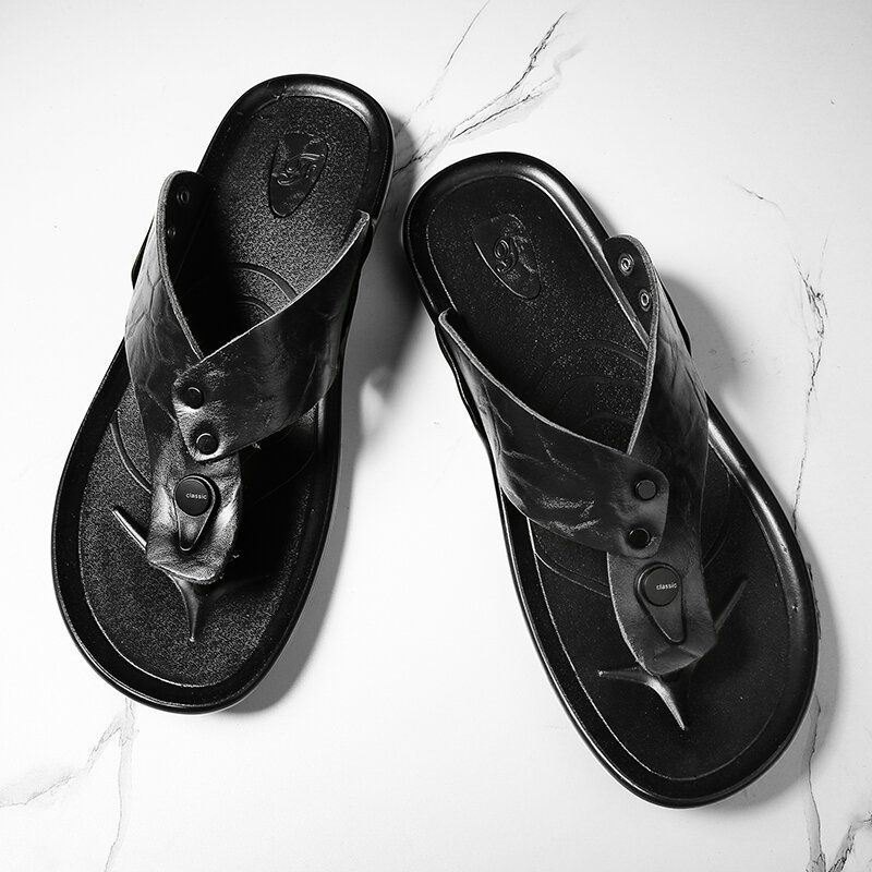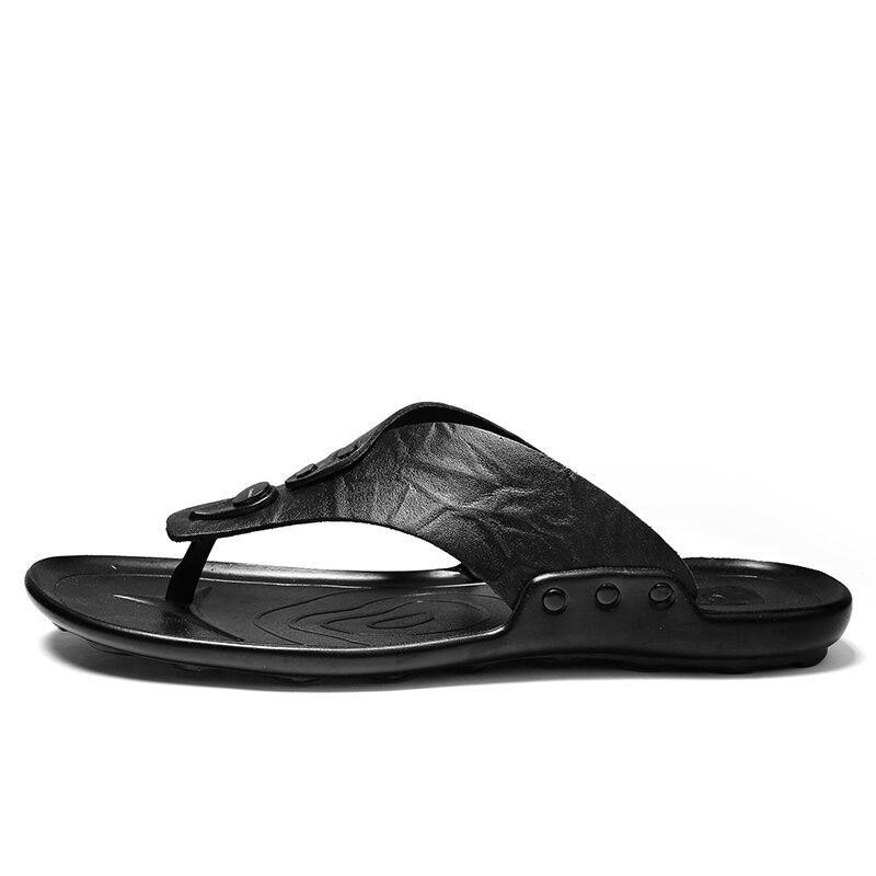 Herre Skinn Pustende Myk Såle Sklisikker Behagelig Utendørs Flip Flops Uformelle Tøfler