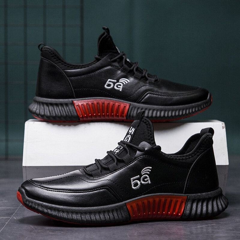 Herre Skinn Pustende Myk Såle Sklisikker Polstret Snøring Uformelle Sportssko