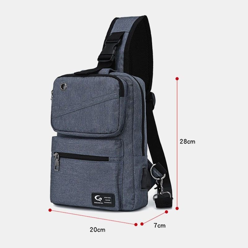 Herre Stor Kapasitet Usb Ladbart Hull Hodetelefonhull Vanntette Brystvesker Skulderveske Crossbody-vesker