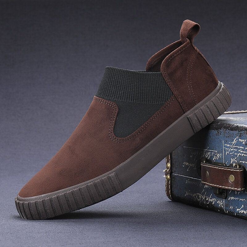 Herre Syntetisk Semsket Skinn Elastisk Panelskjøting Behagelig Lav Topp Slip On Casual Joggesko