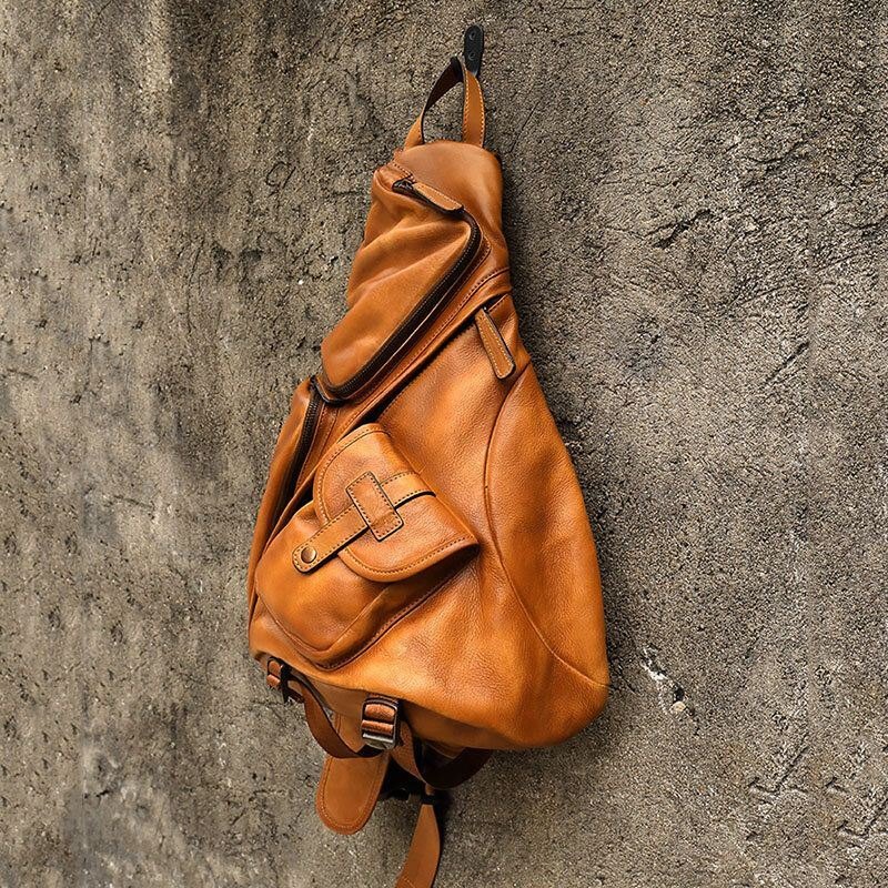 Herre Triangel Brystveske Retro Pu Skinn B6 Fallskjermjegere Skinn Med Stor Kapasitet Myke Uformelle Vesker Skulderveske