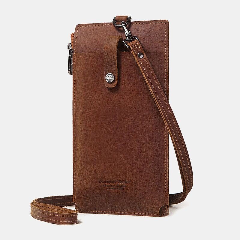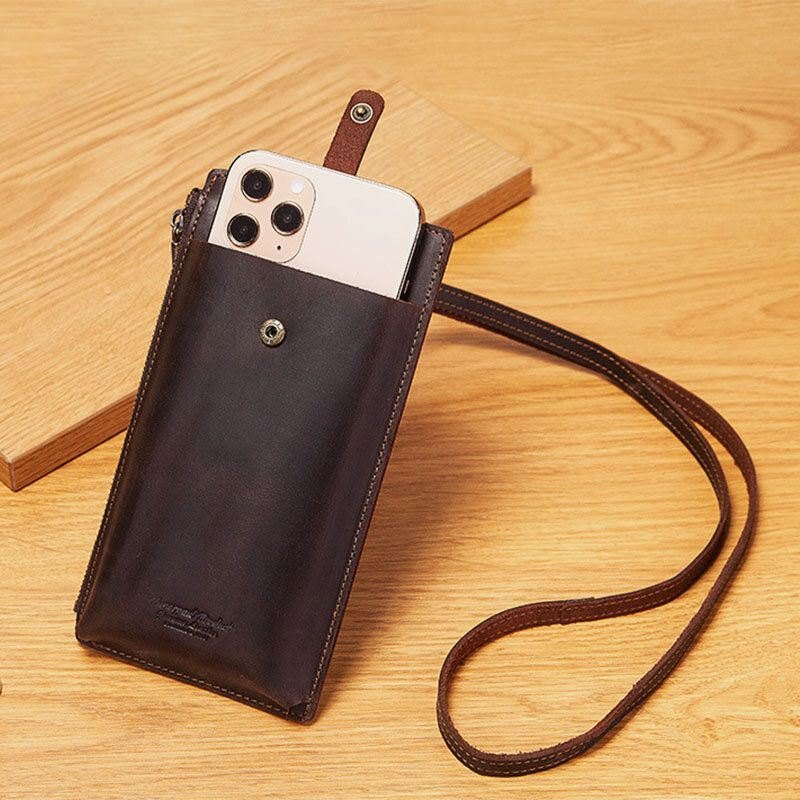 Herre Unisex Ekte Skinn Kuskinn Glidelåsspenne Retro 6.3 Tommers Telefonveske Clutch Lommebok