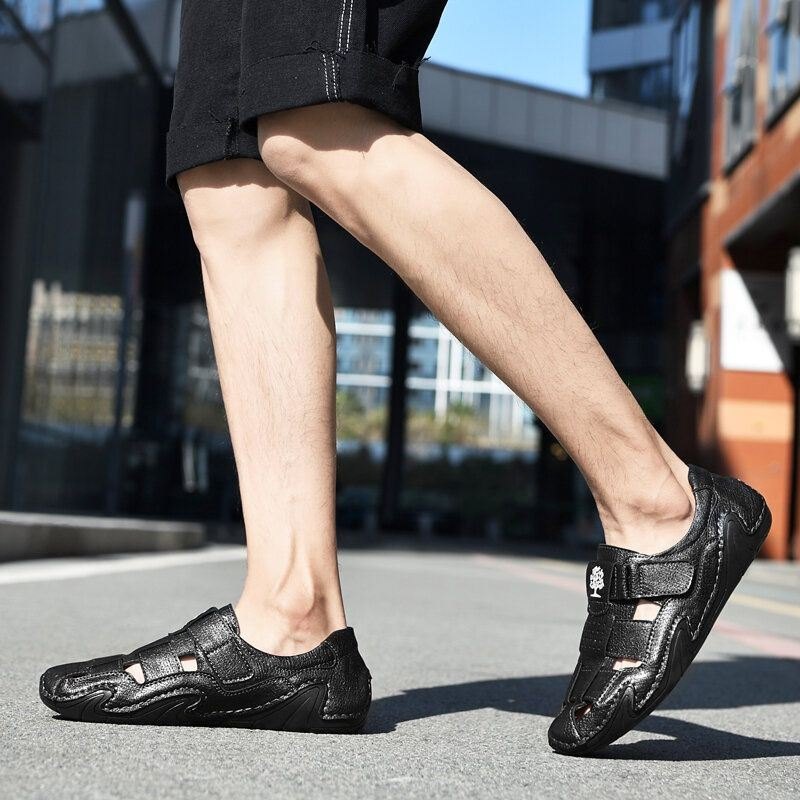 Herre Vevd Stil Krokløkke Håndsøm Skinnsandaler