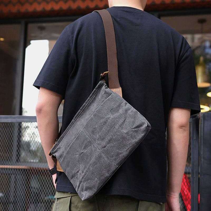 Herre Vintage Canvas Vanntett Multifunksjon Crossbody Bag Skulderveske