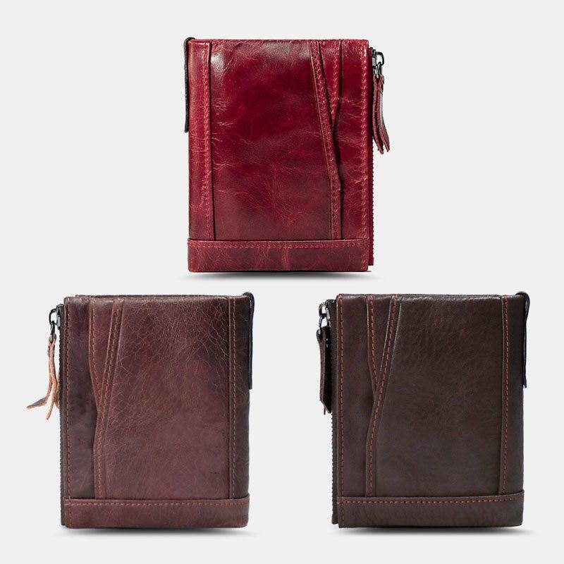Herre Vintage Ekte Skinn Antimagnetisk Multi-spor Ensfarget Lommebok