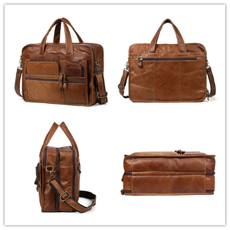 Herre Vintage Ekte Skinn Business Handbag Crossbody Bag Med Stor Kapasitet