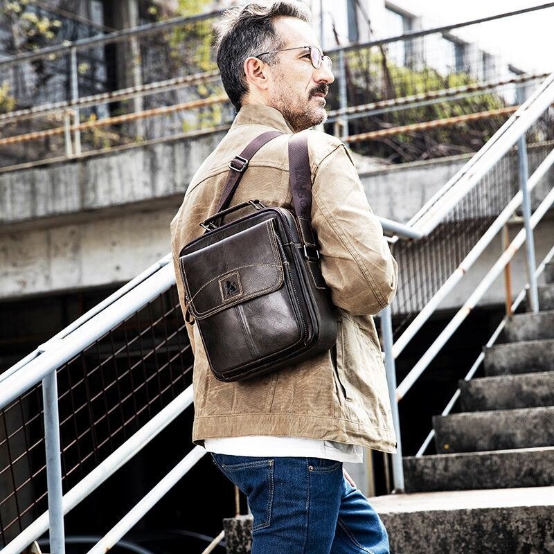 Herre Vintage Ekte Skinn Ensfarge Slitasjebestandig Vanntett Crossbody Bag Skulderveske