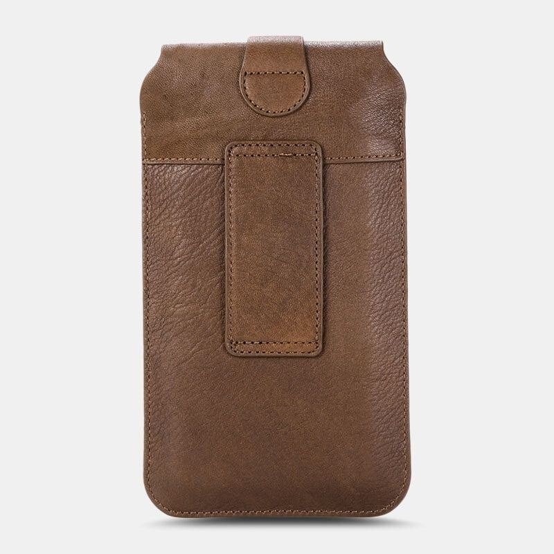 Herre Vintage Ekte Skinn Lang Telefonveske Belteveske Midjeveske