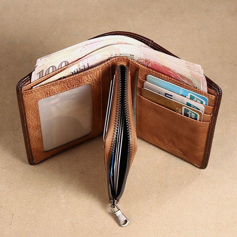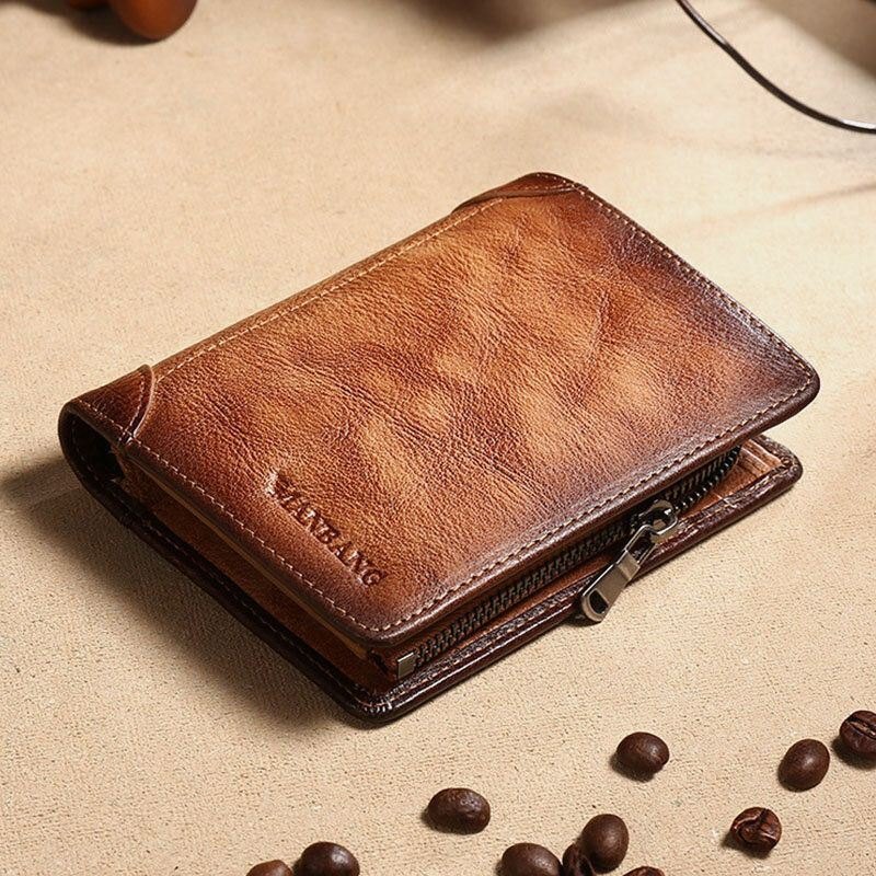 Herre Vintage Ekte Skinn Multi-spor Trifold Kort Lommebok