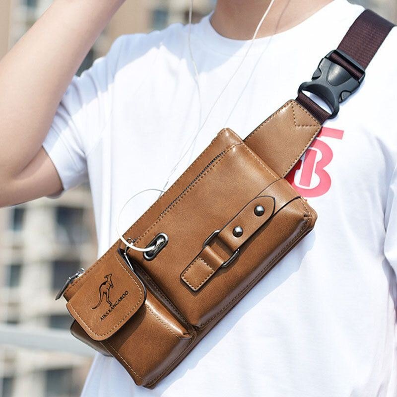 Herre Vintage Kunstskinn Multifunksjonsslitasjebestandig Crossbody Bag Sling Bag Brystveske