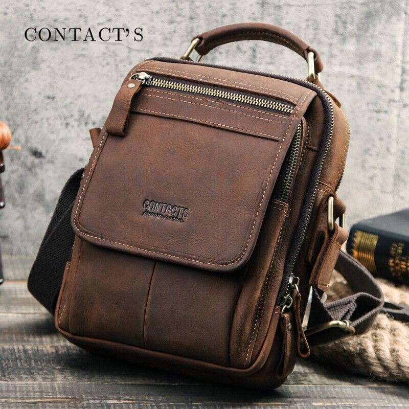 Herre Vintage Retro Ekte Skinn Skulderveske Crossbody Bag