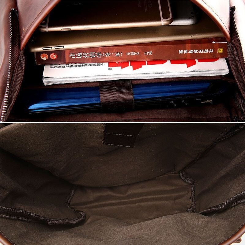 Herre Vintage Stor Kapasitet 15.6 Tommers Bærbar Veske Pu Skinn Ryggsekk Studentveske