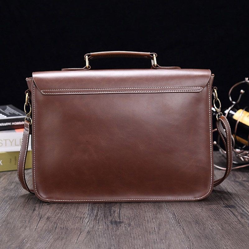 Herre Vintage Vanntett Slitebestandig Faux Laether Business Koffert Crossbody Skulderveske