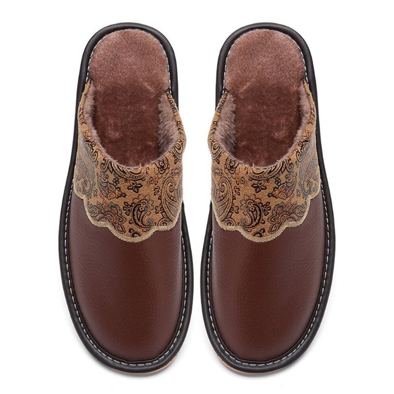 Herre Vinter Pu Skinn Rund Toe Varm Lett Ta På Hjemmetøfler I Bomull