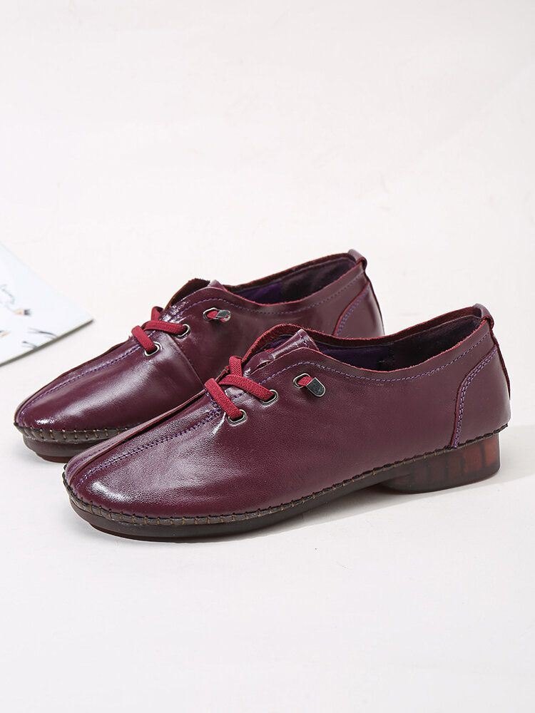 Komfortabel Søm For Dame I Ekte Lær Mykt Snøring Flate Loafters