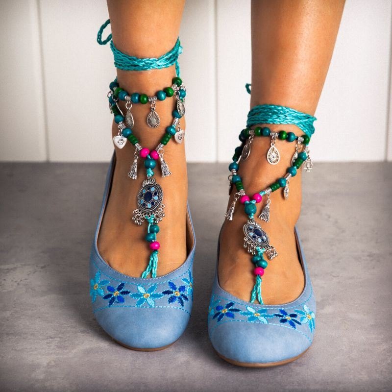 Komfortable Bohemia Broderi Blomster Slip On Flat Shoes For Kvinner