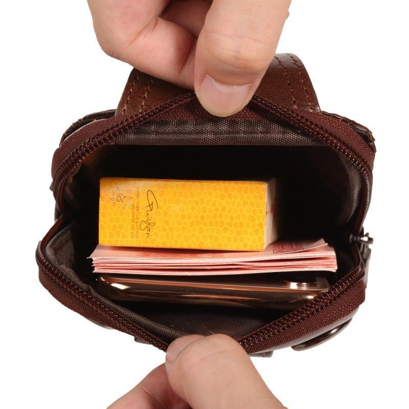 Kuskinn Multifunksjons Telefonveske Vintage Crossbody-veske Oljevoks Midjeveske For Menn