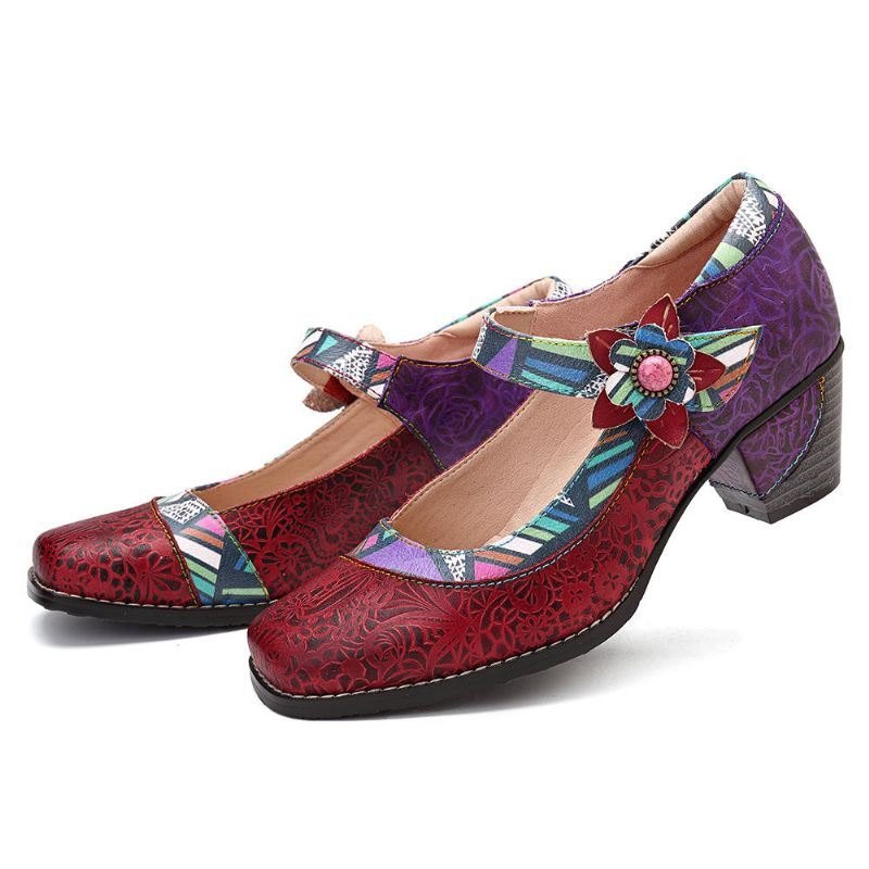 Kvinners Skjøtemønster Borrelås Pumper I Ekte Lær