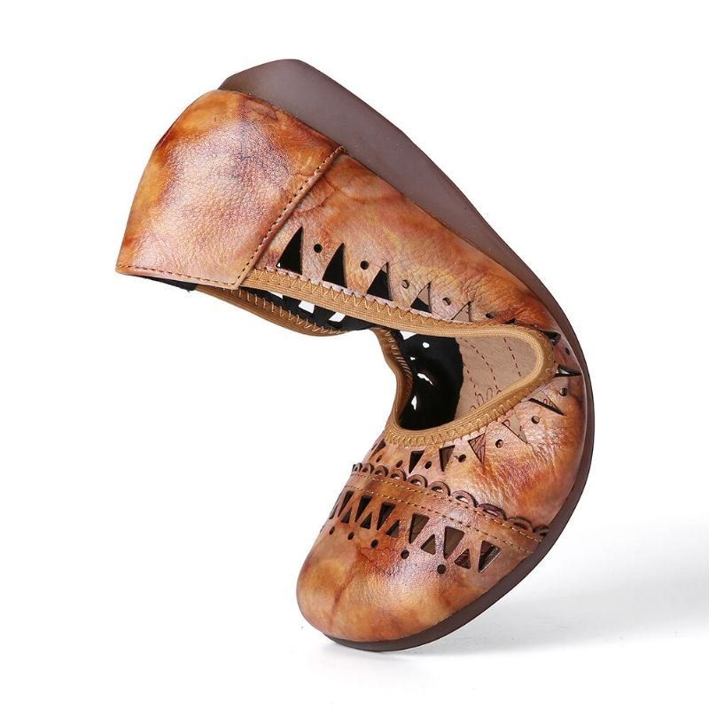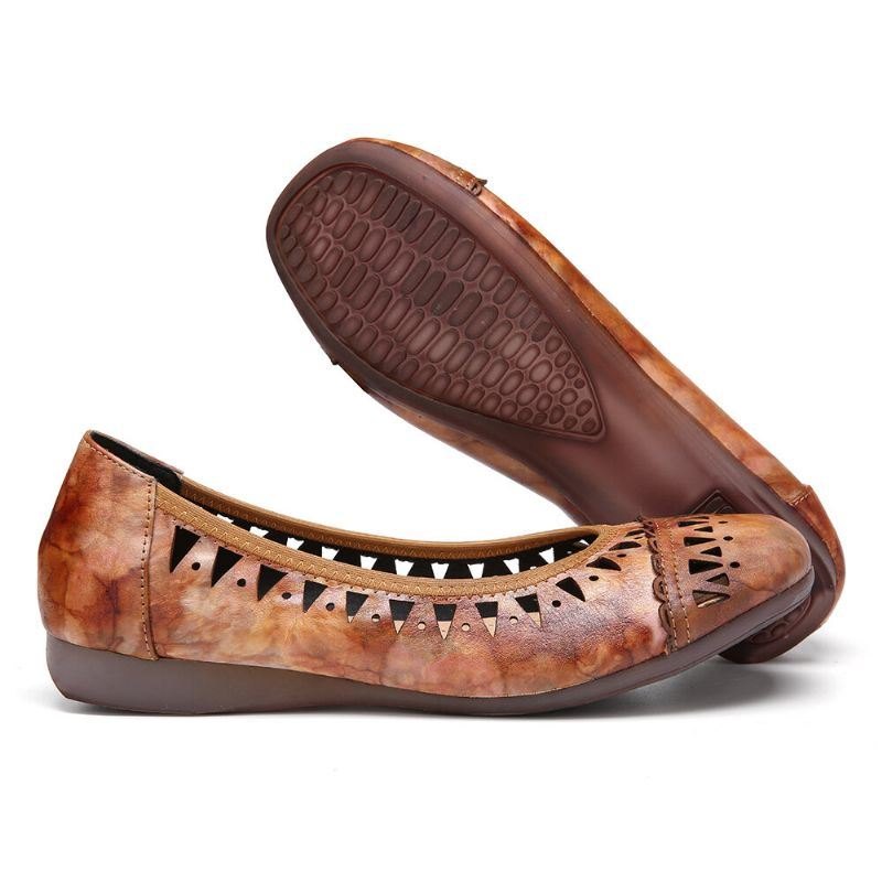 Kvinners Slipsfarget Håndlaget Skinnutskjæring Behagelig Myk Såle Slip On Flat Sko