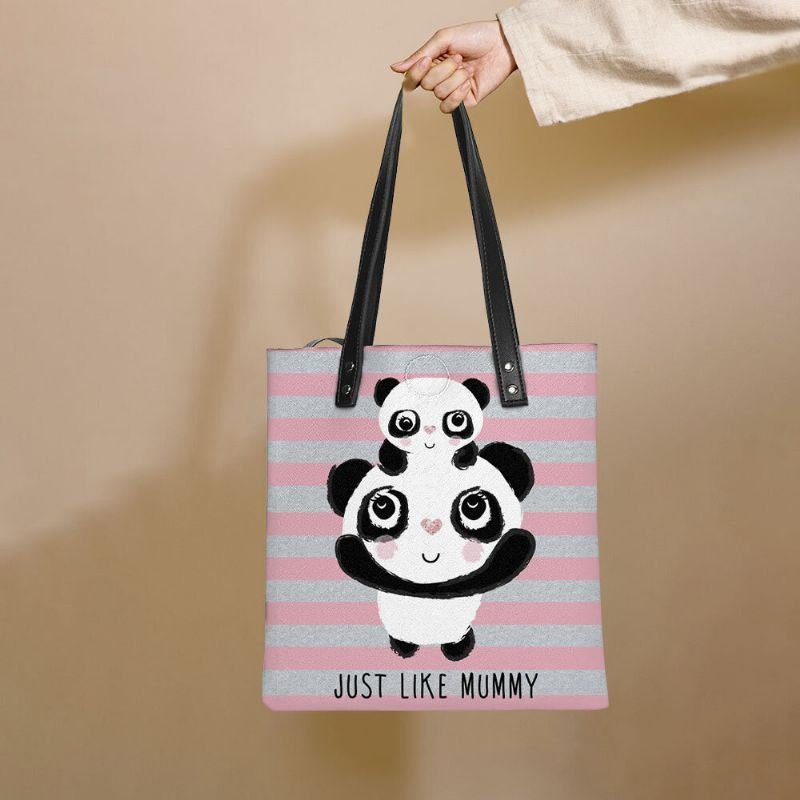 Kvinners Vinter 2022 Søt Panda Striped Printing Håndveske Kunstskinn Stor Kapasitet Vanntett Skulderveske Handleveske