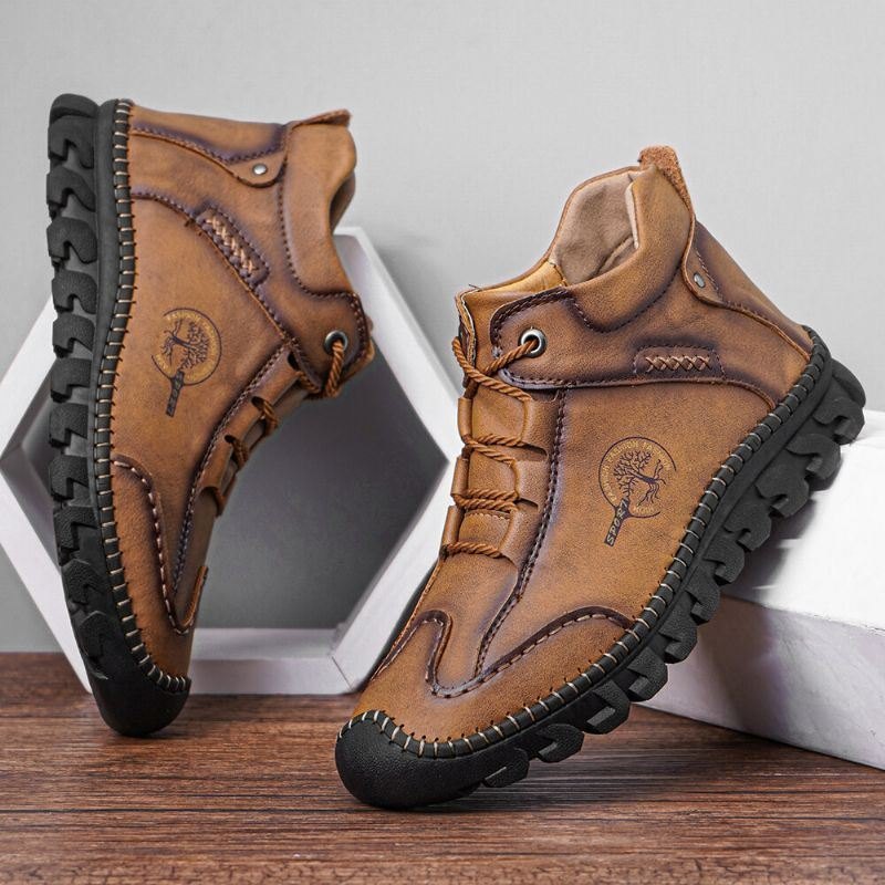 Lær Håndsøm For Herre Pustende Myk Såle Lukket Tå Snøre Uformelle Romerske Støvler