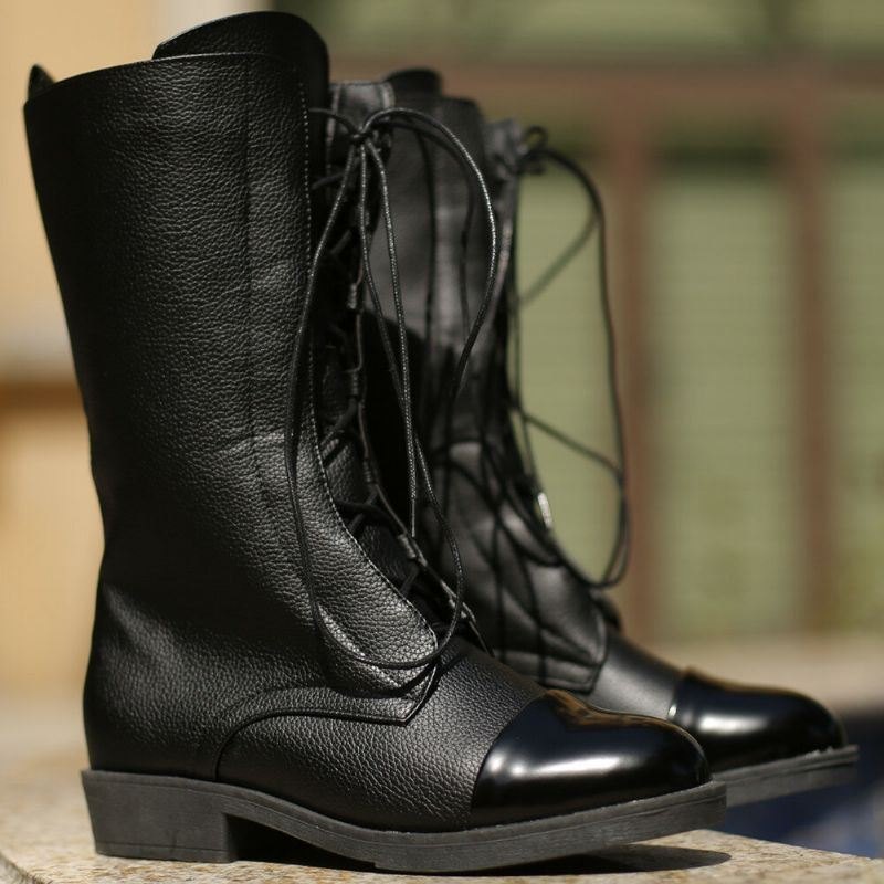 Large Size Dame Snøring Block Hæl Mid Calf Ridestøvler