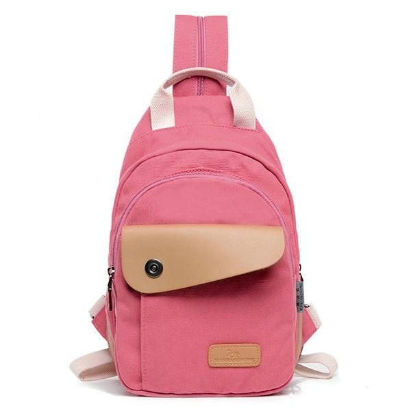 Multifunksjonell Lerretsryggsekk For Dame Pu Lær Brystveske