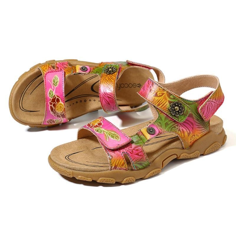 Mykt Håndlaget Mønster Av Ekte Skinn Flate Sandaler For Kvinner