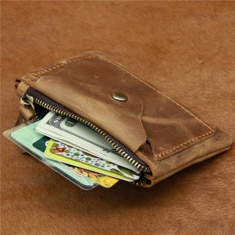 Myntveske Med Glidelås I Ekte Skinn For Herre Pengeklips Kuskinnlommebok
