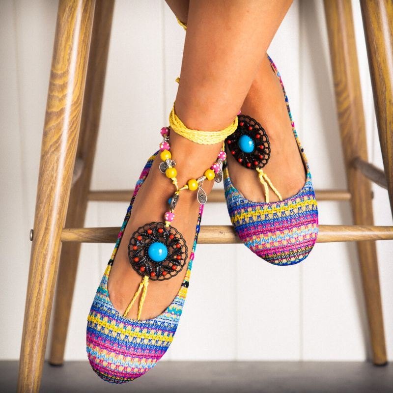 Perlekjede For Dame Med Regnbuestriper I Stoff Bohemia Uformelle Flate Sko
