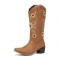Plus Size Dame Retro Solsikke Brodert Chunky Heel Mid Calf Cowboy Boots