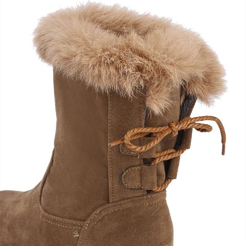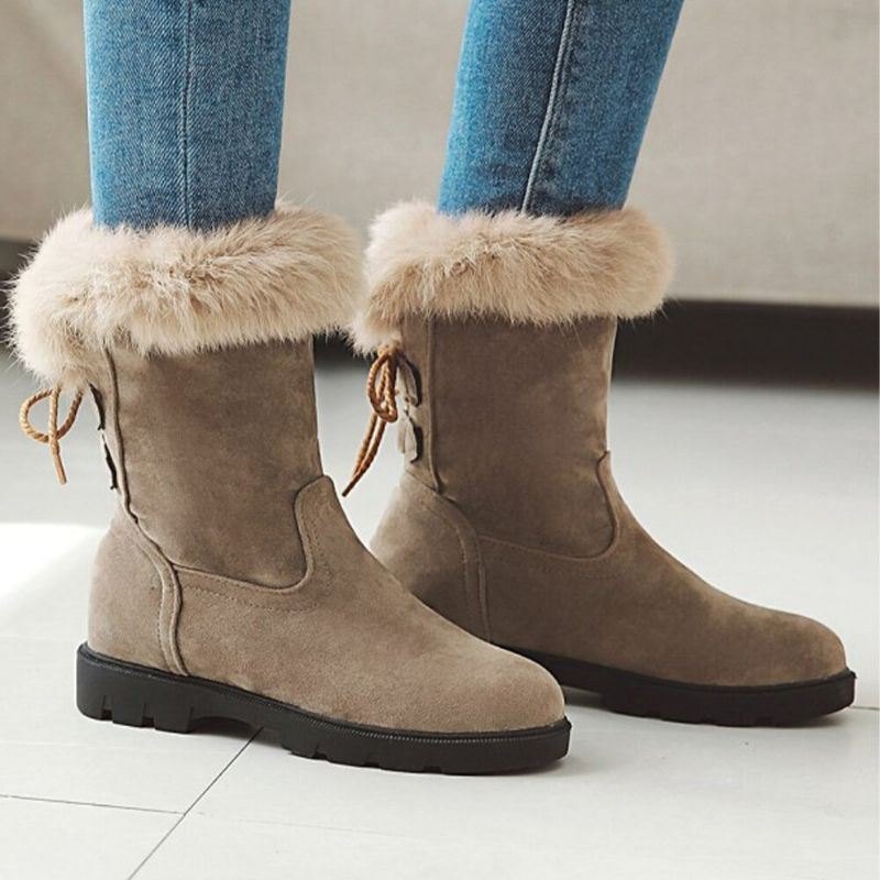 Plus Size Dame Uformelle Stropper Varmt Plysjfôr Mid Calf Snøstøvler
