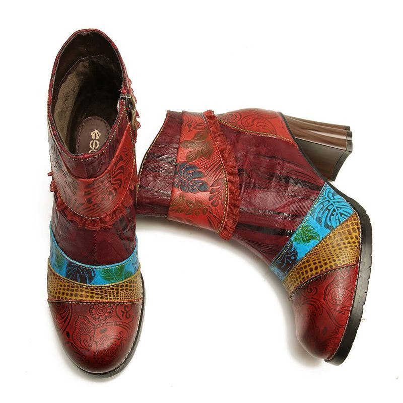 Pregede Bladmønster For Dame Skjøting I Ekte Skinn Høyhæl Ankelstøvler Med Glidelås