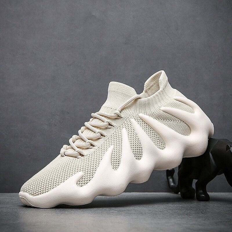 Pustende Stoff For Menn Myk Tykk Såle Sklisikker Snøring Sport Uformelle Tykke Sneakers