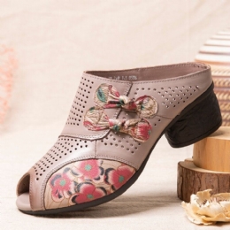 Retro-blomstertrykk For Dame Skinn Behagelig Flatstripet Thongsandaler