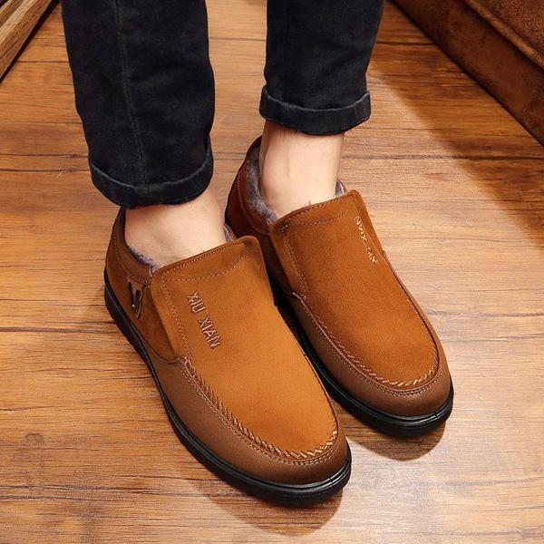 Slip On Myk Såle Ullfôr Rund Tå Flate Varme Sko For Menn