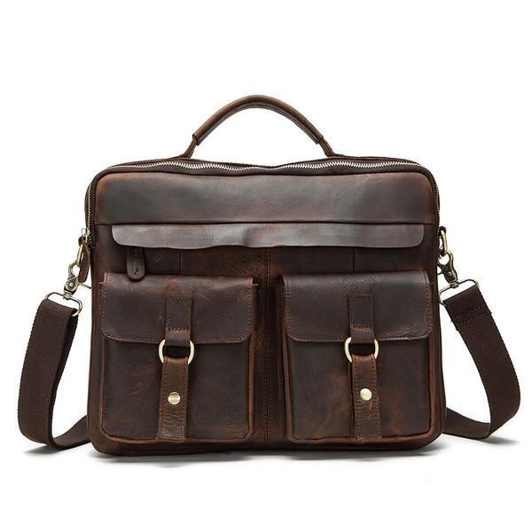 Slynge I Ekte Skinn Vintage Håndveske Dual Use Messenger Bag For Menn