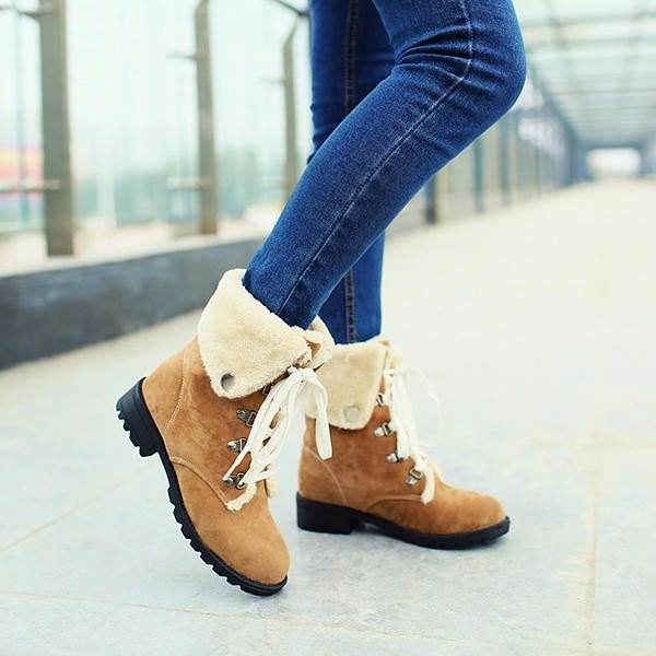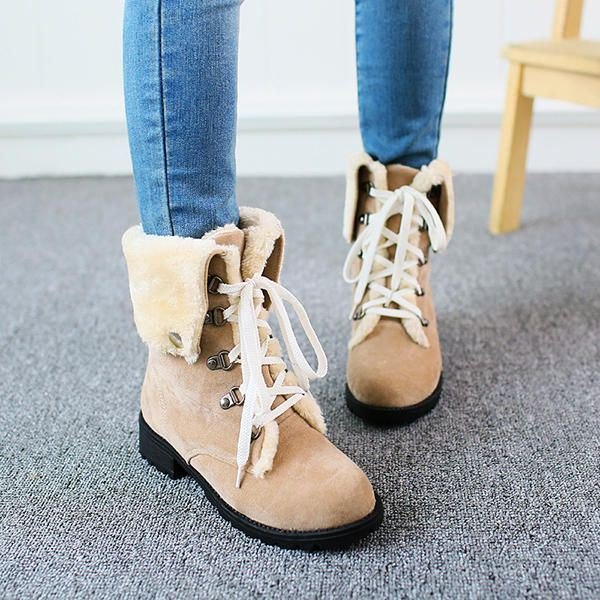 Snøstøvler Vinter Damer Holder Varm Snøre Flate Sko