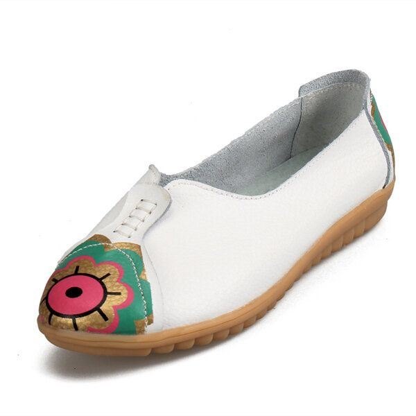 Soløye Blomstermønster For Kvinner Mykt Skinn Slip-ons Lazy Driving Flat Loafers