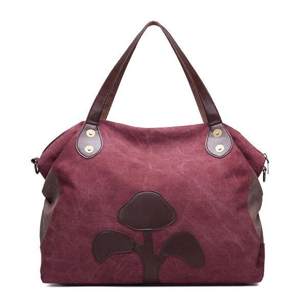 Stor Kapasitet Dame Canvas Patchwork Blomstermønster Uformell Håndveske