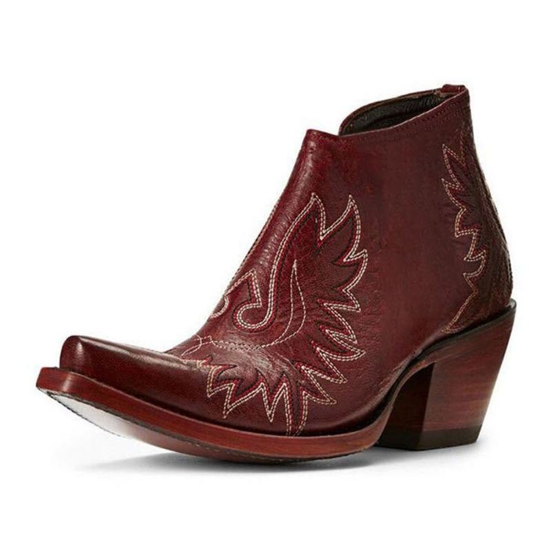 Stor Størrelse Dame Retro Etnisk Broderi Slip-on Firkantet Tå Tykk Hæl Sidekuttet Ankelstøvletter