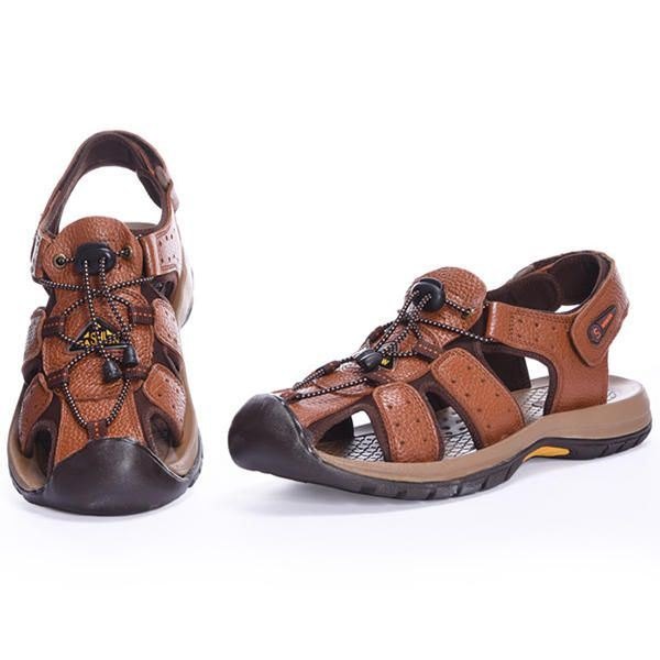 Strandsandaler I Ekte Skinn For Herre Utendørs Rund Tå Flate Sko