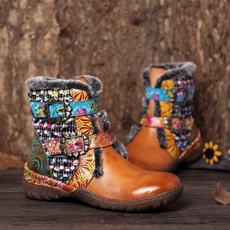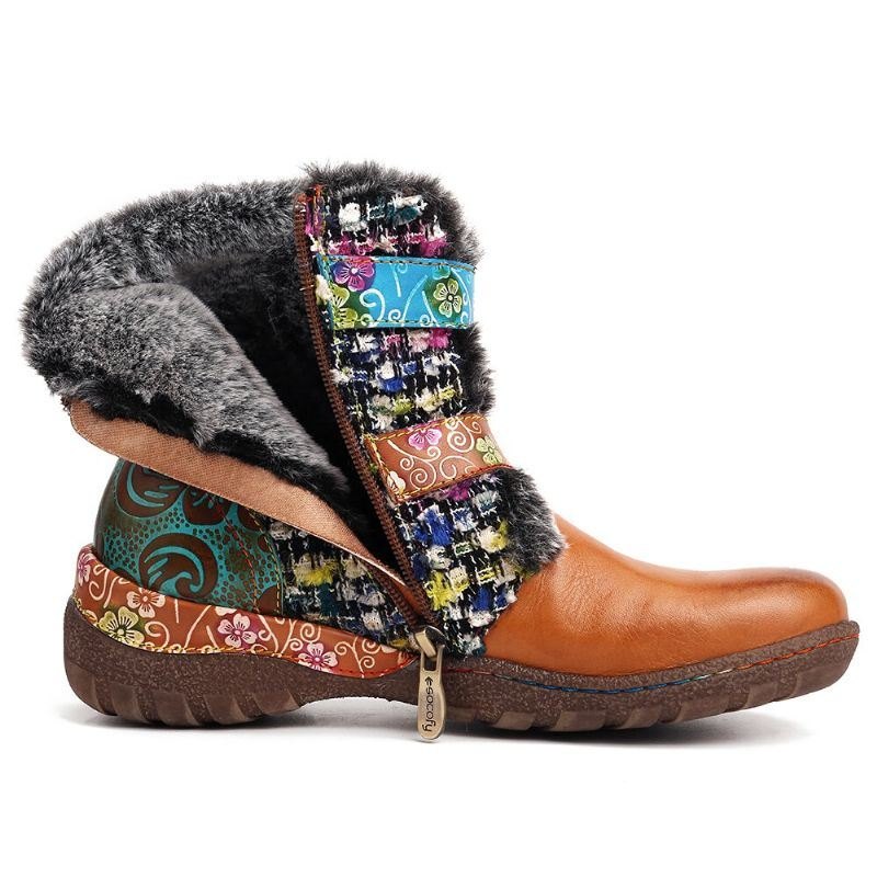 Supermykt Ekte Skinn For Dame Fargerike Sømmer Flate Støvletter Med Varme Fôr