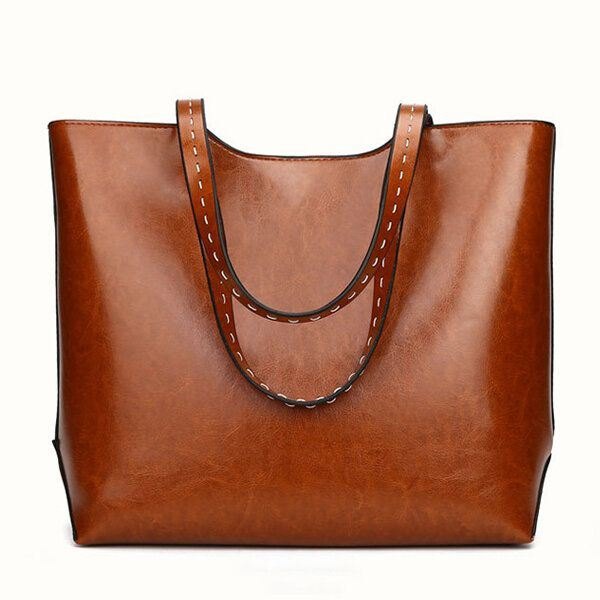 Tote Bag I Oljeskinn For Dame Retro Crossbody-veske