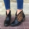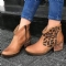 Uformell Skjøting Leopard Sideglidelås Chunky Heel Cowboy Ankelstøvler For Kvinner