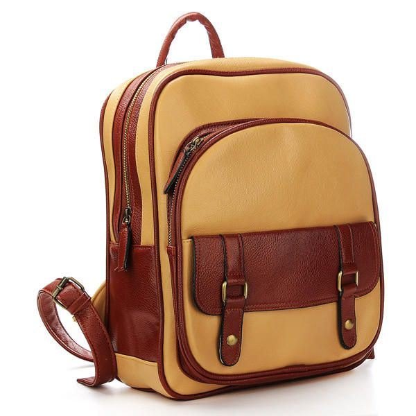 Vintage Dame Pu Skinn Ryggsekk Satchel Skulder Skoleveske