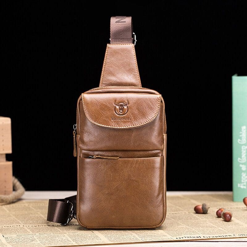 Vintage Ekte Skinn Brystveske Skulderveske For Menn